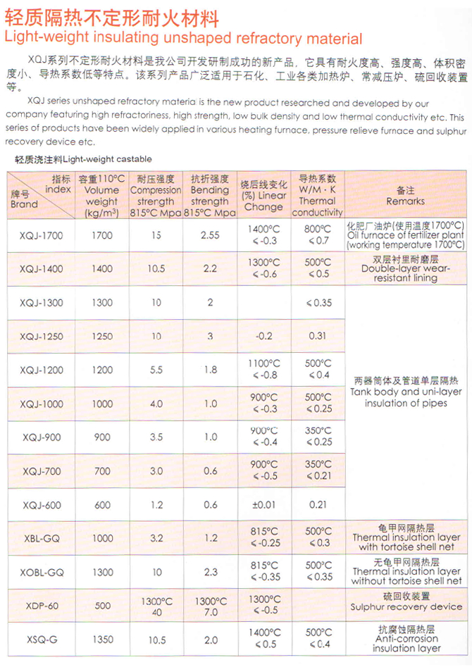 轻质隔热不定形耐火材料 Light-weight insulating unshaped refractory material