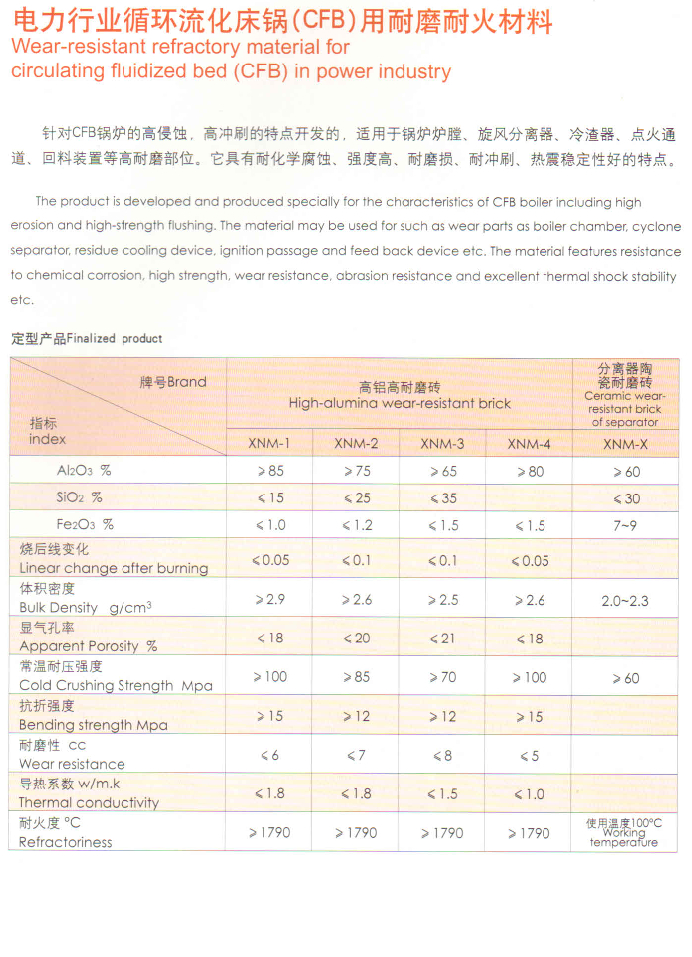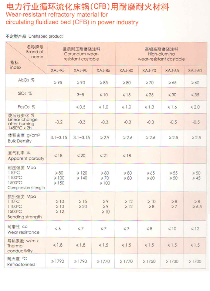 电力行业循环流化床锅(CFB)用耐磨耐火材料 Wear-resistant refractory material for circulating fluidized bed(CFB)in power