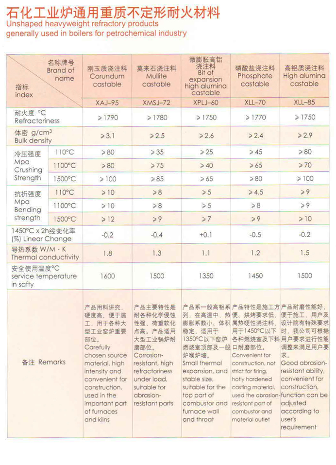 石化工业炉通用重质不定形耐火材料Unshapedheavyweight refractory products generally used in boilers for petrochemictry
