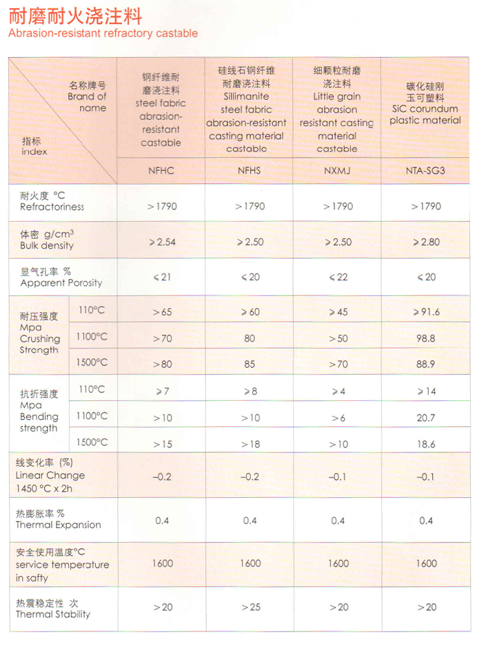耐磨耐火浇注料 Abrasion-resistant refractory castable
