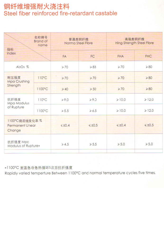 钢纤维增强耐火浇注料 Steel fiber reinforced fire-retardant castable