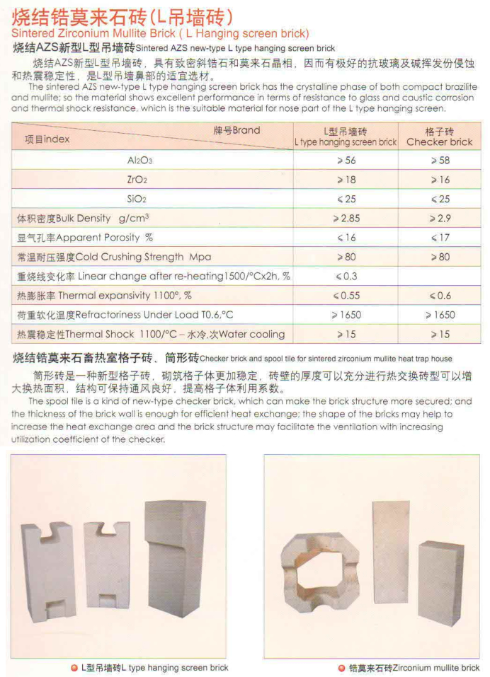 烧结锆莫来石砖(L吊墙砖)Sintered Zirconium Mullite Brick(L Hanging screen brick)